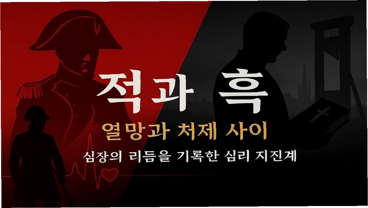 적(赤)은 나폴레옹을 상징했고, 흑(黑)은 성직자의 검은 수도복을 의미했다. 소설 주인공 줄리앙은 나폴레옹을 숭배하는 인물이어서 그처럼 훌륭한 군인(빨간 군복)이 되고자 열망했다. 군인이 주도한 혁명의 시기는 낙조로 저물었고, 그에게 남은 유일한 성공의 길은 ‘성직’(검은 수도복)의 길 뿐이었다. 나폴레옹을 열렬히 숭배해, 그의 군대에서 입신했지만, 결국 좌절한 스탕달의 모습과 닮아 있었다. 줄리앙은 성직의 숭고함으로써 귀부인 여성을 유혹해, 자신의 영달을 추구했지만 결국 불륜이 발각 돼 동네를 떠나야 했다. 새로운 터전에서, 새로운 사랑과, 새로운 성공을 꿈 꾼 줄리앙. 어엿한 부잣집 귀족 색시의 마음을 빼앗는 데 성공하지만, 과거의 추문은 질긴 줄기로 그에게 엉겨붙었다. 구원은 단 하나. 추문의 원천을 제거하는 것. 줄리앙은 고향으로 돌아가 한 교회를 찾았다. 과거 내연녀인 귀부인이 기도하는 곳. 임재한 신이 어린 양을 보듬는 곳. 줄리앙은 총을 꺼내 격발했다. 주류로 들어가기 위해 바동거린 줄리앙은 단두대에 목이 잘렸다. 칼날에 서린 시뻘건 적색(赤色)의 피는 그의 야망만큼이나 허망히 흩날려, 그는 흑색(黑色)의 죽음으로 스러졌다.