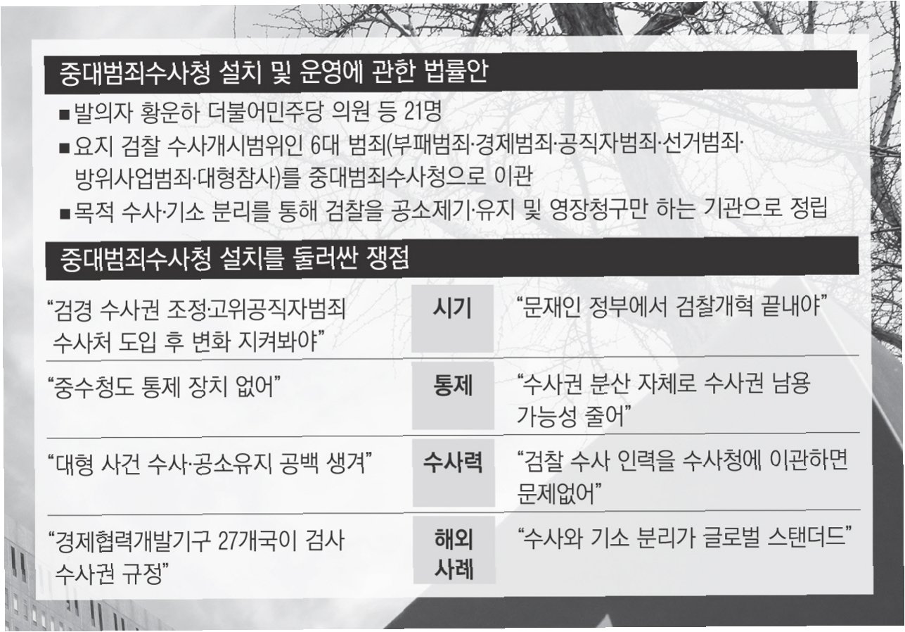 이번에 심사 대상에 오른 검찰 개혁 법안은 검찰청법 폐지 법률안, 공소청 설치 및 운영에 관한 법률안, 중대범죄수사청(중수청) 설치 및 운영에 관한 법률안 등 6건입니다. 핵심 내용은 기소를 담당하는 ‘공소청’과 중대범죄 수사를 담당하는 ‘중대범죄수사청’으로 검찰청을 분리하는 것입니다. 또한, 경찰, 중수청, 공수처 등 다원화된 수사기관 간의 수사권 조정을 통해 권력 분산을 꾀하고 있습니다.