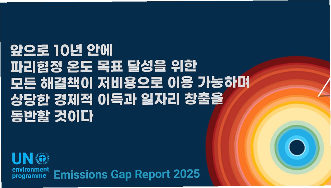 이런 비판을 염두에 두고 눈여겨봐야 할 보고서가 있습니다. 매년 당사국 총회를 앞두고 유엔환경계획(UNEP)은 <배출 격차 보고서(Emissions Gap Report, EGP)>를 발간합니다. 이 보고서를 발간하는 목적은 지구 온난화를 제한하기 위해 필요한 온실가스 감축 수준과 실제 각국의 감축 약속 사이의 '격차'를 평가하고 방향을 제시하는 것입니다. 파리협정 10년을 맞아 발간한 올해 보고서에서 가장 눈에 띄는 것은 '기후변화회의 무용론'에 대한 UN의 응답입니다. 같이 보면 좋을 것 같아 원문을 따라가 보겠습니다.