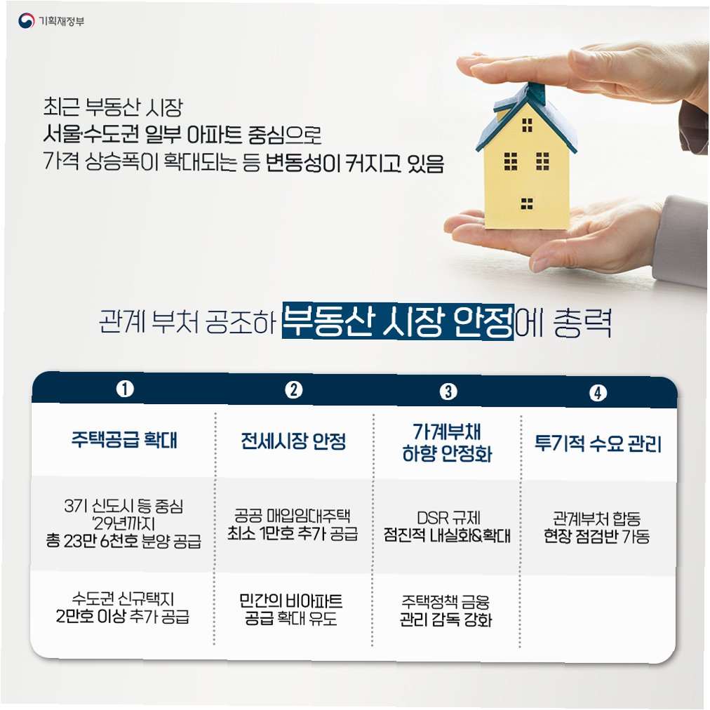 정부의 강력한 부동산 시장 안정화 대책 발표: 서울 전역 규제 강화, 대출 옥죄기, 불법 행위 단속, 공급 확대 추진. 과열된 시장을 진정시키고 실수요자 중심의 시장 질서를 확립하려는 의지.