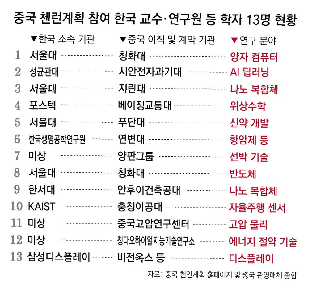 A.중국은 AI, 반도체 등 첨단 기술 분야의 경쟁력을 강화하기 위해, '인재의 질'이 높은 한국의 석학 및 과학 기술 인재들을 적극적으로 유치하고 있습니다. 파격적인 조건과 환경을 제시하여 인재들을 유혹하고 있습니다.