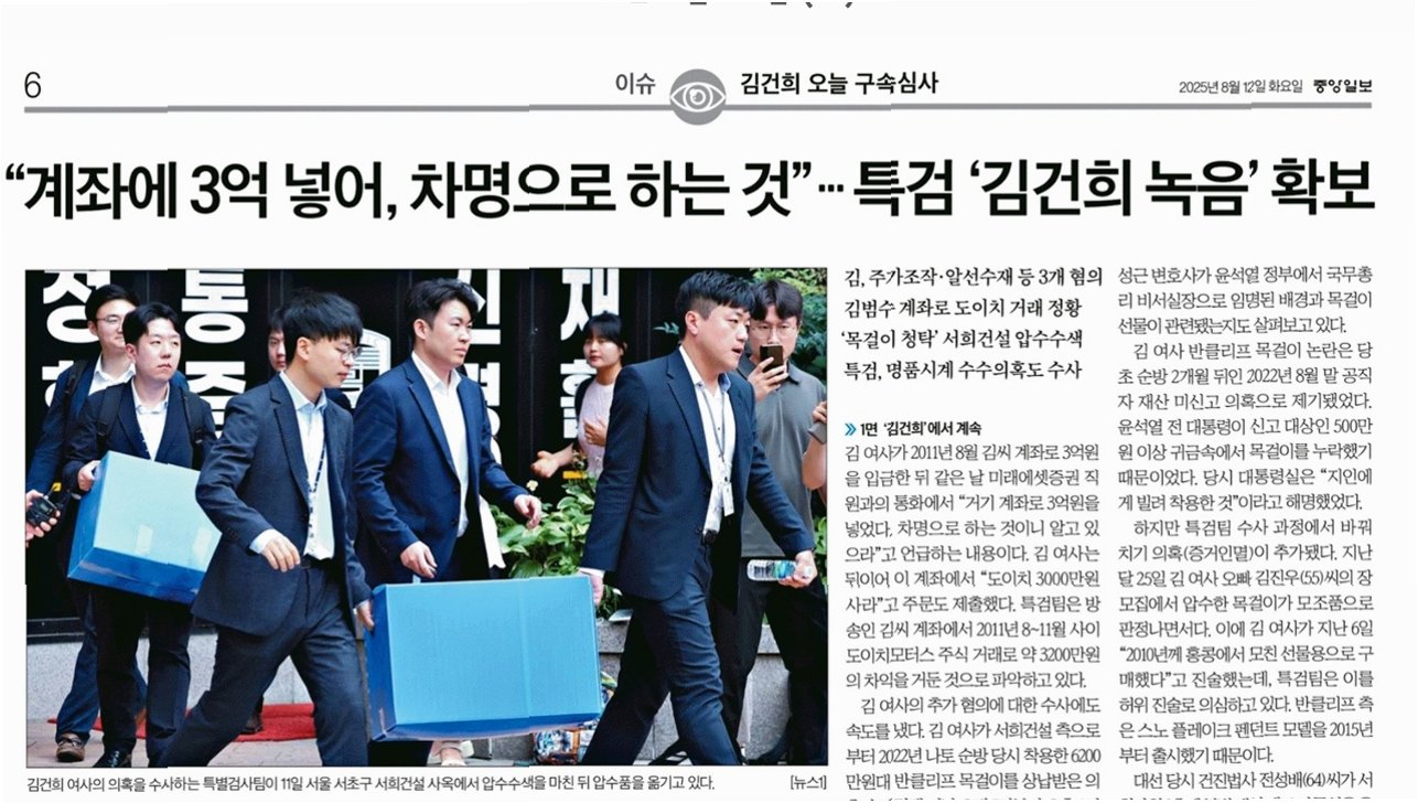 JTBC의 단독 보도에 따르면, 3500만 원 상당의 시계를 전달한 사업가 서성빈 씨가 김건희 여사의 요청으로 윤석열 전 대통령에게 후원금을 냈다는 진술이 특검 조사에서 나왔습니다. 서 씨는 2022년 대선을 앞두고 김건희 여사가 직접 후원금을 모아달라고 요청했으며, 심지어 '이재명 후보보다 빨리 모아야 한다'는 말을 했다고 진술했습니다. 이 사건은 정치자금법 위반 여부와 관련된 중요한 쟁점으로 떠올랐습니다.