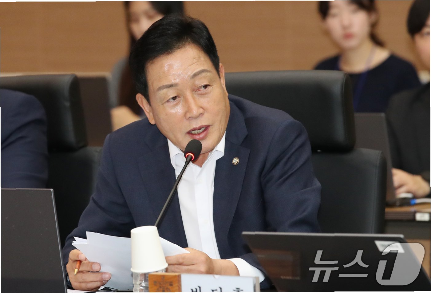 사진으로 확인된 화환 발송 인물은 전재수 해양수산부 장관, NH농협은행 경영지원부문 황준구 부행장, 농협생명 박병희 대표이사, 김인호 산림청장, 농협은행 강태영 은행장이다. 이들은 모두 농해수위가 국정감사를 실시하는 피감기관의 핵심 책임자들이다.