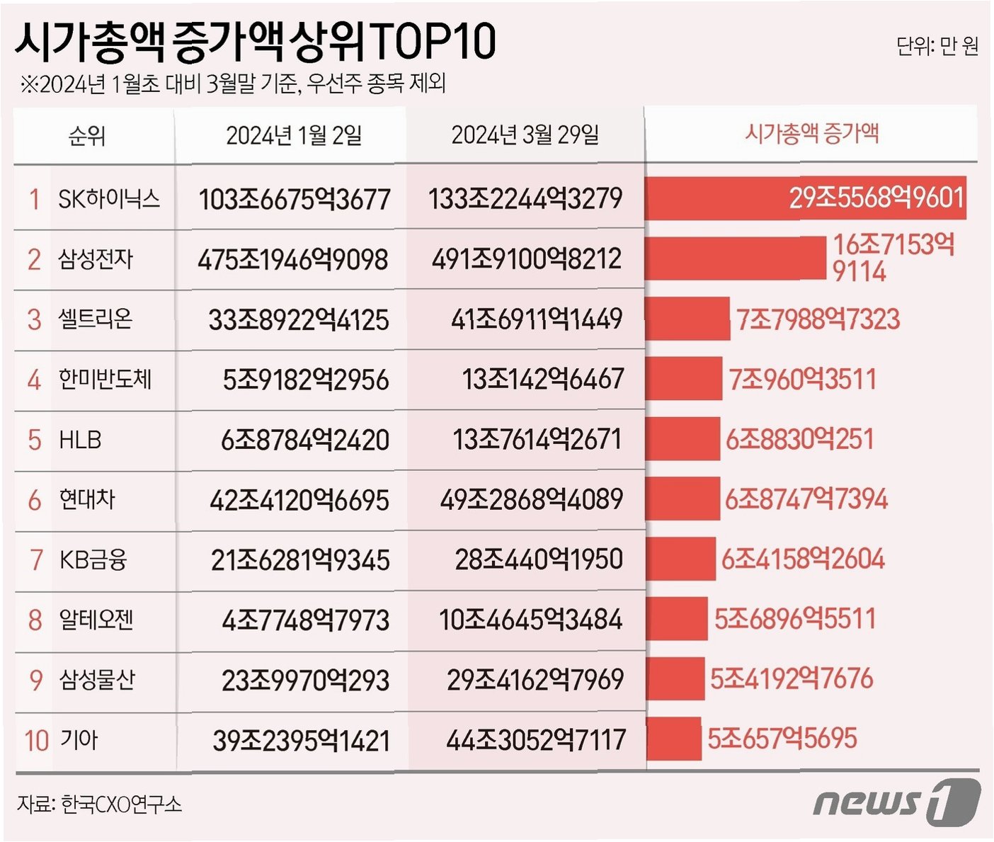 주요 종목들의 희비극