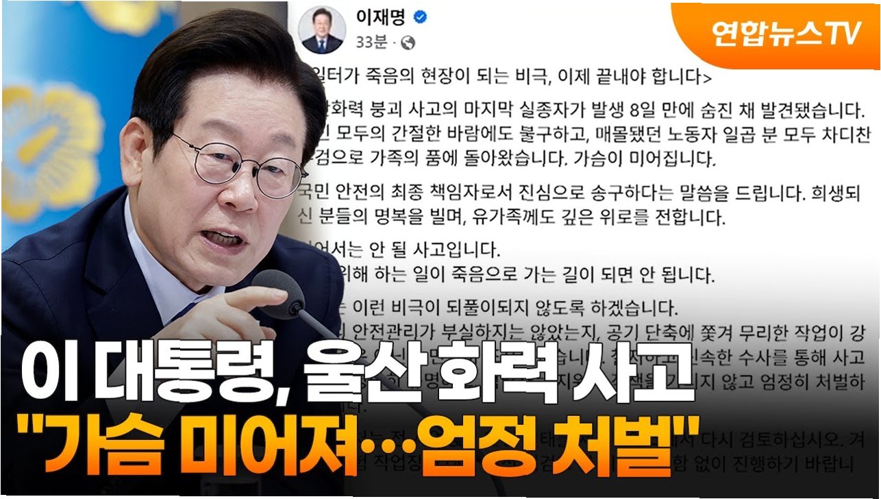 울산 화력 사고에 대한 이재명 대통령의 깊은 애도와 엄정 처벌 의지 표명, 그리고 안전 시스템 재검토 지시는 국민 안전을 최우선으로 하는 정부의 강력한 의지를 보여줍니다. 다시는 이러한 비극이 반복되지 않도록, 철저한 진상 규명과 안전 불감증 해소를 위한 노력이 필요합니다.