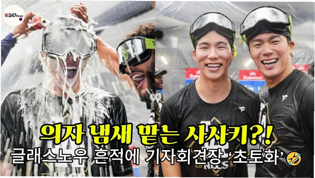 사사키 선수가 의자 냄새를 맡고 교체를 요청한 이유는 무엇일까요? 그 비밀은 바로 앞서 의자에 앉았던 선수, 타일러 글래스노우 선수에게 있었습니다. 샴페인 파티를 마친 글래스노우 선수가 젖은 채로 의자에 앉았고, 그 자리에 사사키 선수가 앉으려 했던 것이죠. 옷을 갈아입고 기자회견에 임한 사사키 선수는 찝찝함을 느꼈을 것입니다. 이 예상치 못한 상황은 선수들의 끈끈한 유대감을 보여주는 동시에, 승리의 기쁨을 더욱 특별하게 만들어주는 에피소드로 기억될 것입니다.