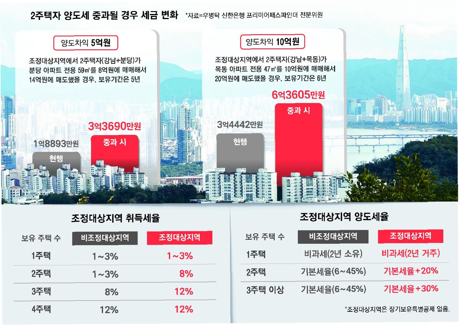 양도세, 2주택자는 20%p, 3주택자는 30%p 가산