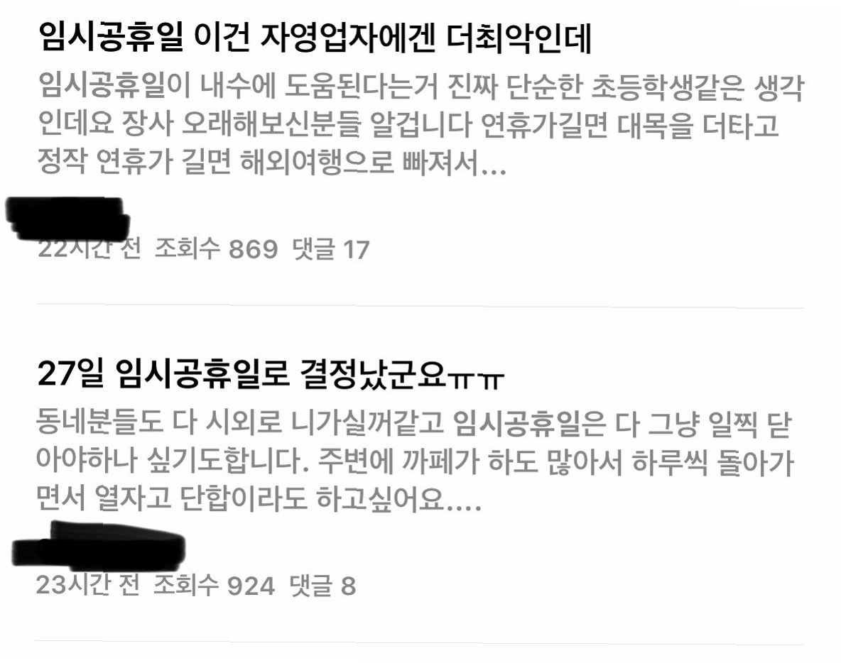 황금연휴, 웃음 뒤에 숨겨진 자영업자들의 고통