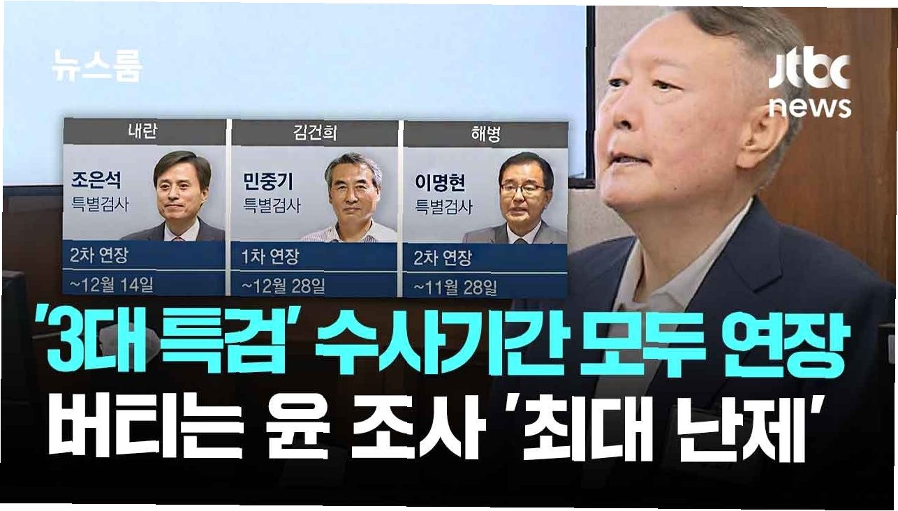 3대 특검, 수사 기간 연장…'버티기' 윤석열 전 대통령, 최대 난제 직면