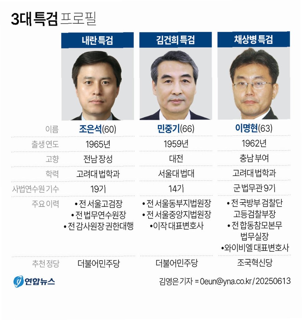 A.내란 특검은 북한 무인기 침투 의혹 등 외환 수사를, 김건희 특검은 명태균 공천개입 사건, 서희건설 뇌물 사건, 통일교 의혹 등을, 해병 특검은 '격노' 실체 규명을 위한 수사를 진행하고 있습니다.