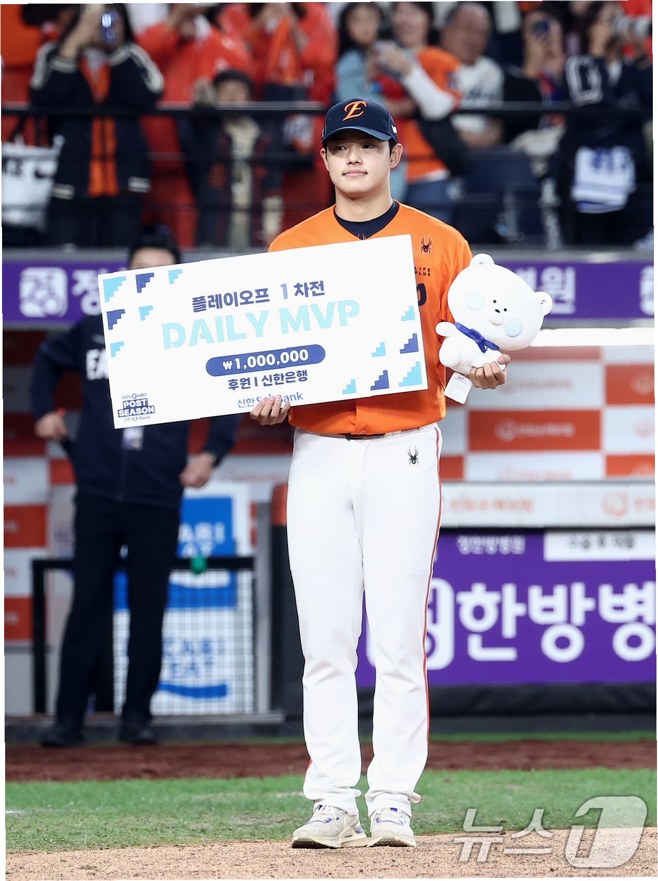 2025 KBO리그 플레이오프 3차전에서 한화 이글스는 삼성 라이온즈를 꺾고 승리했습니다. 이 경기의 주역은 '대전 왕자' 문동주 선수였습니다. 문동주는 6회말 무사 1루 상황에 등판하여 4이닝 동안 2피안타 1볼넷 6탈삼진 무실점으로 삼성 타선을 완벽하게 제압했습니다. 그의 활약 덕분에 한화는 시리즈 전적 2승 1패를 기록하며 한국시리즈 진출에 단 1승만을 남겨두게 되었습니다. 문동주는 1차전 2이닝 무실점에 이어 3차전에서도 데일리 MVP로 선정되는 영예를 안았습니다.