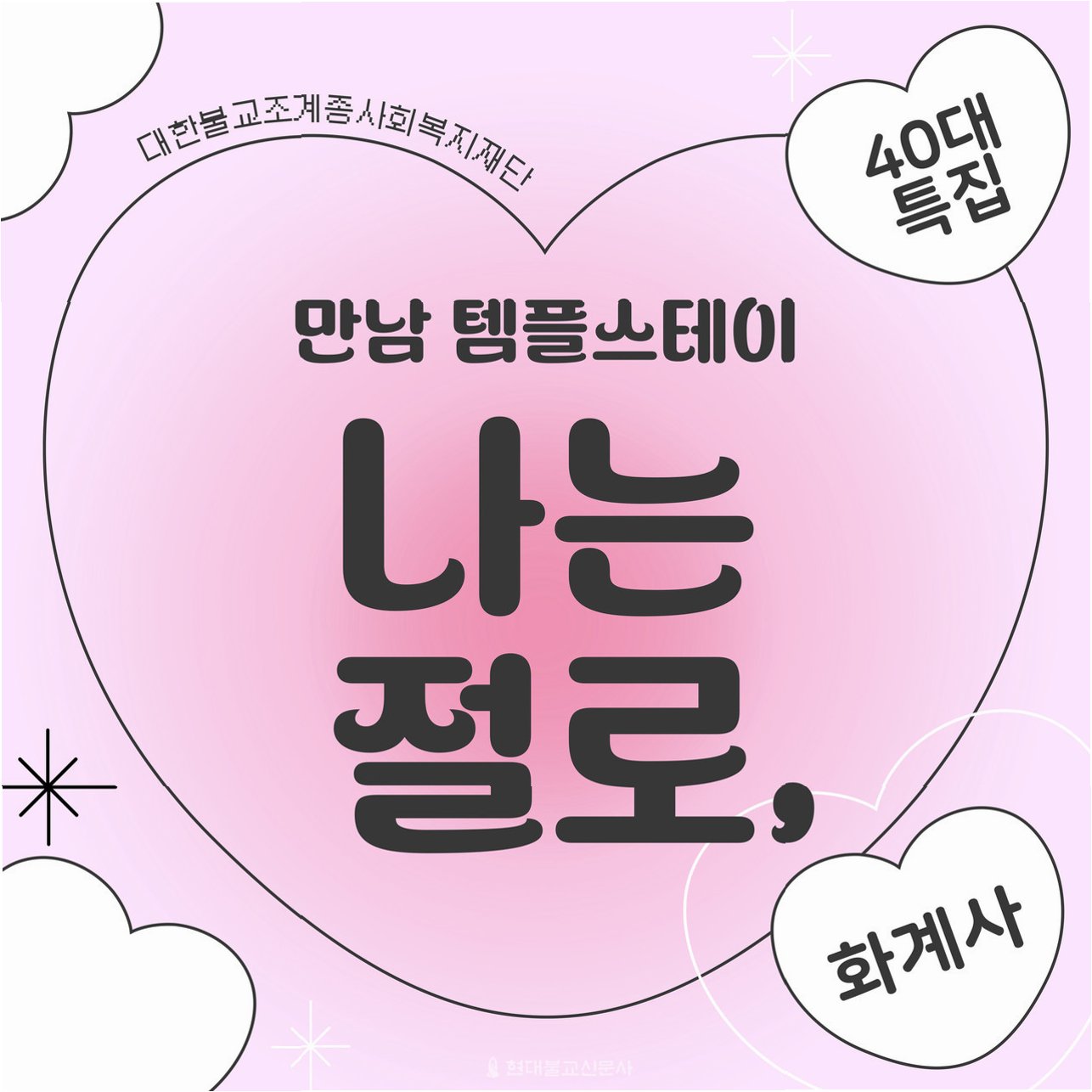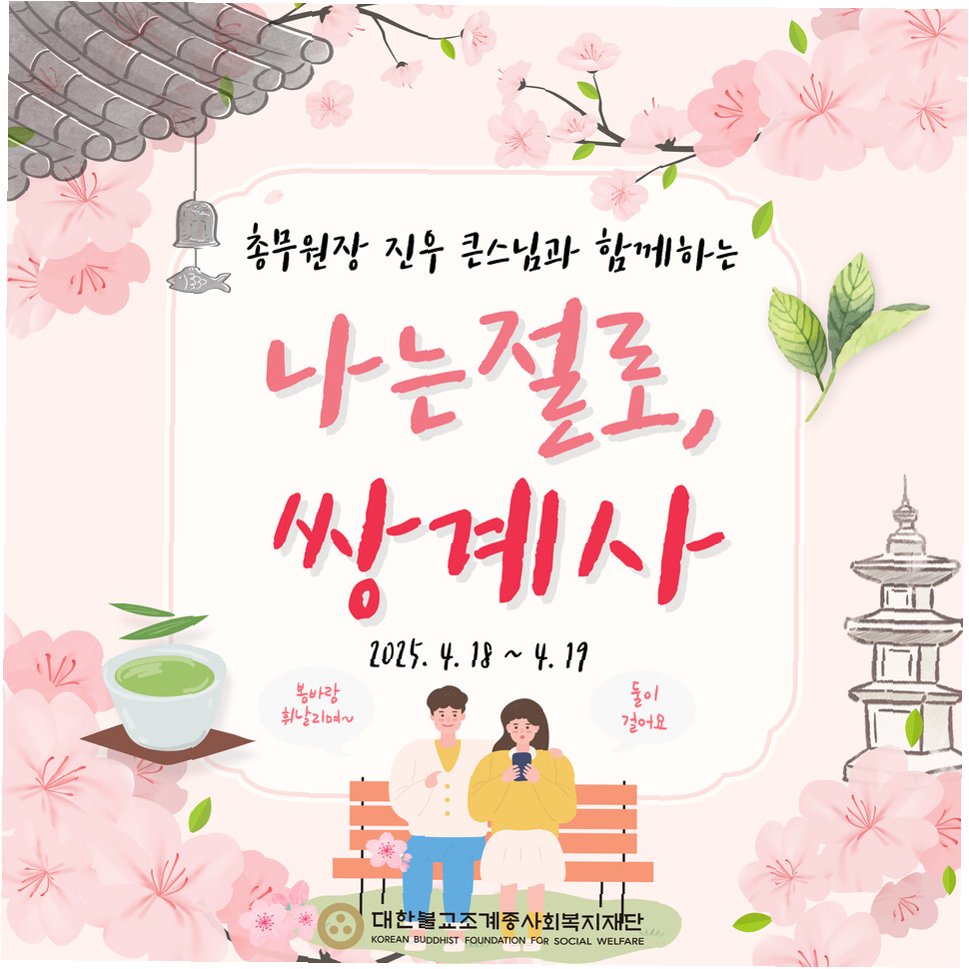 이번 '나는 절로, 수덕사'는 한국 불교의 대표 수행 도량이자 전법의 사찰인 예산 수덕사에서 1박 2일간 진행될 예정입니다. 그동안 40대 참가자들의 요청이 쇄도했던 만큼, 이번 특집에 대한 기대가 매우 큽니다. 대한불교조계종사회복지재단 대표이사 도륜스님은 “그동안 참가 의사를 꾸준히 밝혀온 40대의 뜨거운 열기를 확인할 수 있었다”며, “알찬 프로그램으로 미혼남녀의 인연 맺기에 최선을 다하겠다”고 밝혔습니다. 수덕사에서의 특별한 경험은 40대 참가자들에게 잊지 못할 추억과 함께, 진정한 인연을 만날 수 있는 기회를 제공할 것입니다.