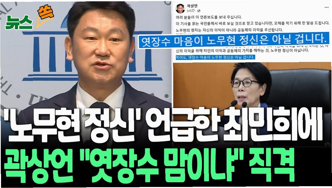 A.곽상언 변호사는 최민희 의원이 '노무현 정신'을 자신의 이익을 위해 부적절하게 사용했다고 비판했습니다. 그는 노무현 정신의 핵심 가치인 공동체 이익 우선, 가치 존중을 강조했습니다.