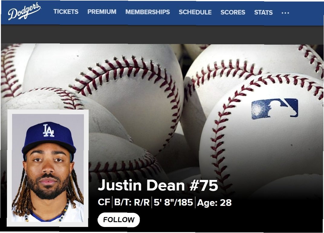 A.저스틴 딘은 '대수비 요원'으로, 수비 능력이 뛰어난 선수입니다. 2018년 드래프트에서 지명되었으며, 다저스에서 새로운 기회를 얻어 활약하고 있습니다.