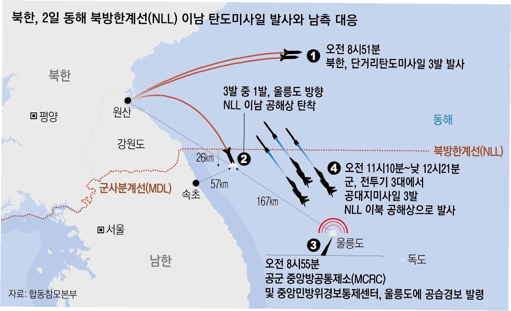 합동참모본부 발표: 발사체 포착 및 대응