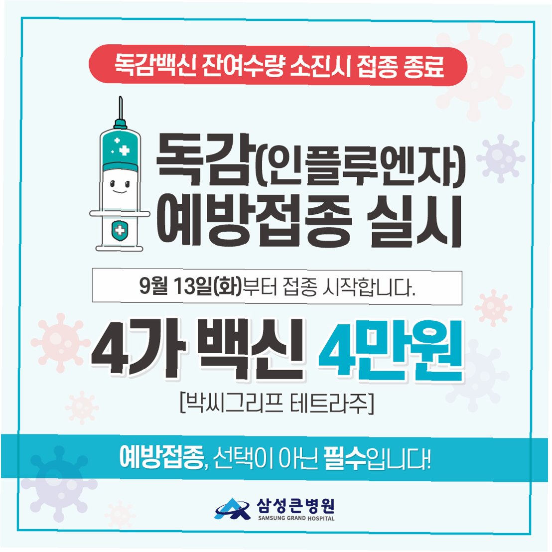 핵심만 콕! 지금 바로 독감 예방접종 받으세요!
