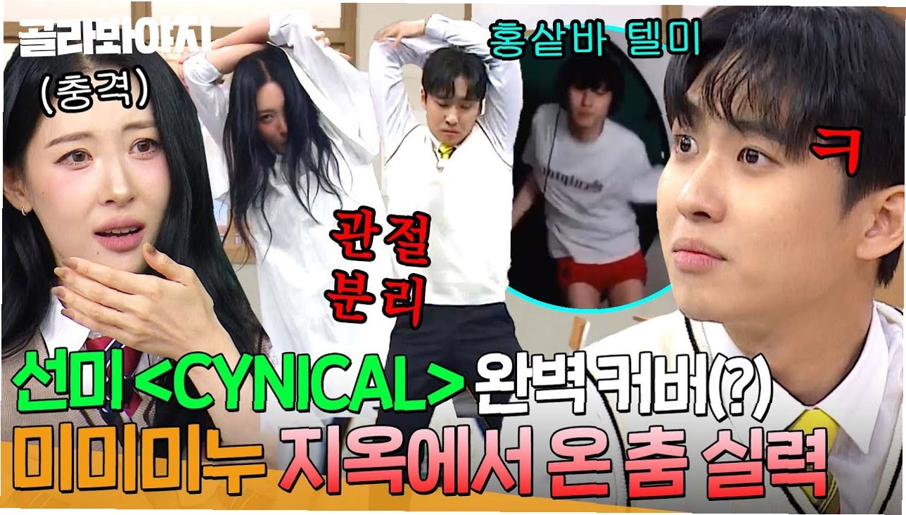 미미미누의 '텔미' 커버 영상이 공개되자, 원곡 가수 선미는 충격에 휩싸였습니다. 짧은 바지를 입고 춤을 추는 미미미누의 모습에 선미는 '저거 뭐야?'라며 당황한 기색을 감추지 못했죠. 형님들은 '방송 사고 아니냐', '빤스 아니냐' 등의 질문을 쏟아내며 폭소를 자아냈습니다. 미미미누는 '반바지인데 좀 숏이다'라고 해명했지만, 그의 파격적인 무대는 시청자들에게 강렬한 인상을 남겼습니다. 특히, 이수근은 '교육 유튜버라고 하지 않았냐'며, 김희철은 '너 팬티까지 고대네'라고 말하며 웃음을 더했습니다.